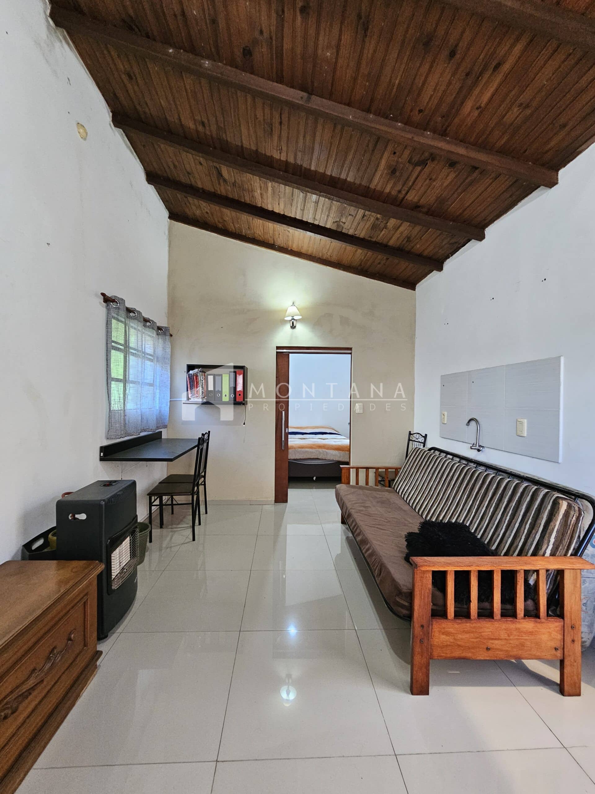 PB: Acceso a la propiedad, 1 dormitorio amplio (principal), living comedor con estufa a leña, 1 baño completo, cocina definida con mesada y