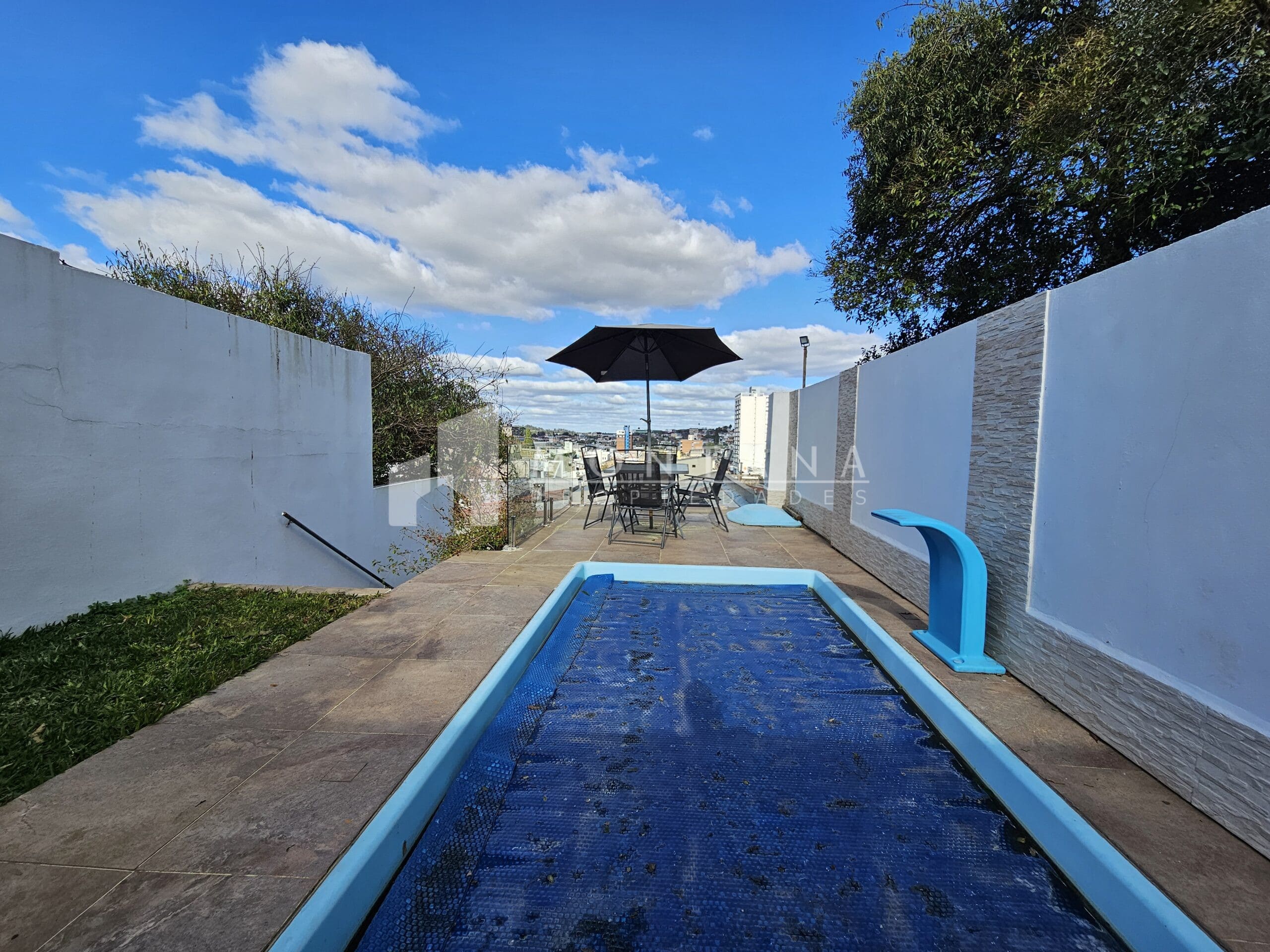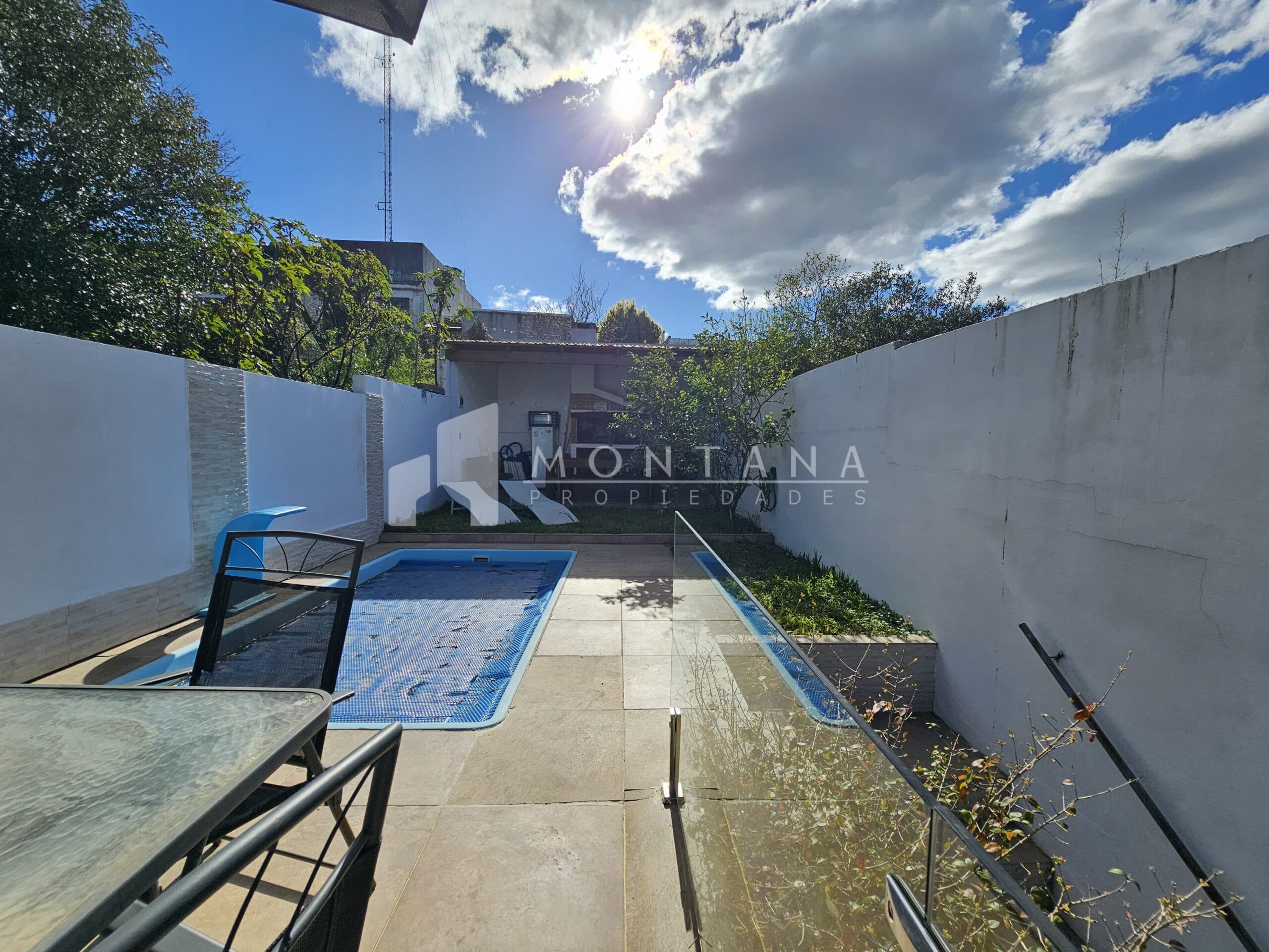 PA: hermoso patio con piscina climatizada, parrillero techado, área verde y linda vista a la ciudad.