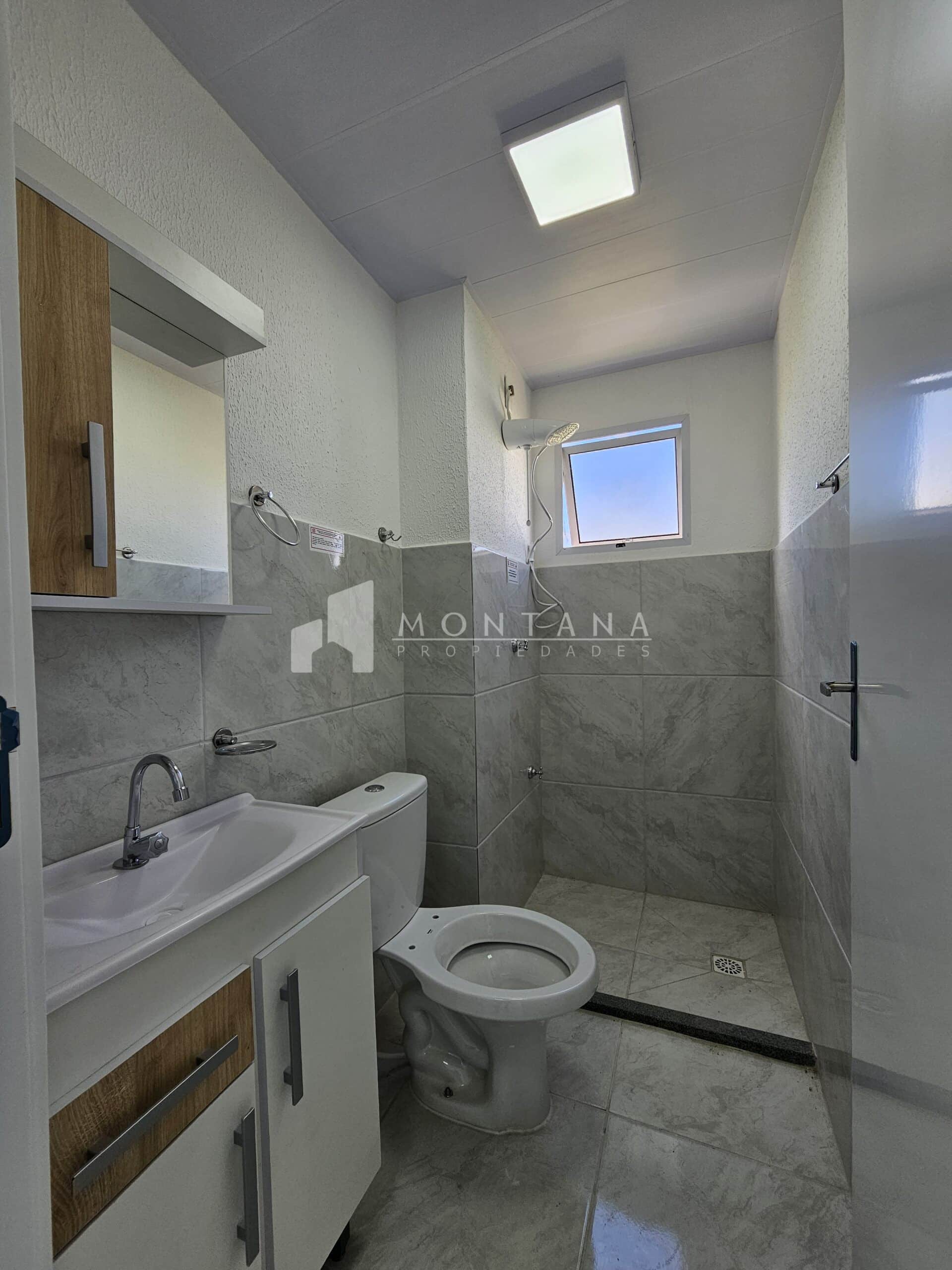 Cuenta con: 2 dormitorios (1 en suite) 2 baños completos, living cocina comedor con estufa a leña y área de servicio, balcón con parrillero y cochera para 1 vehículo.