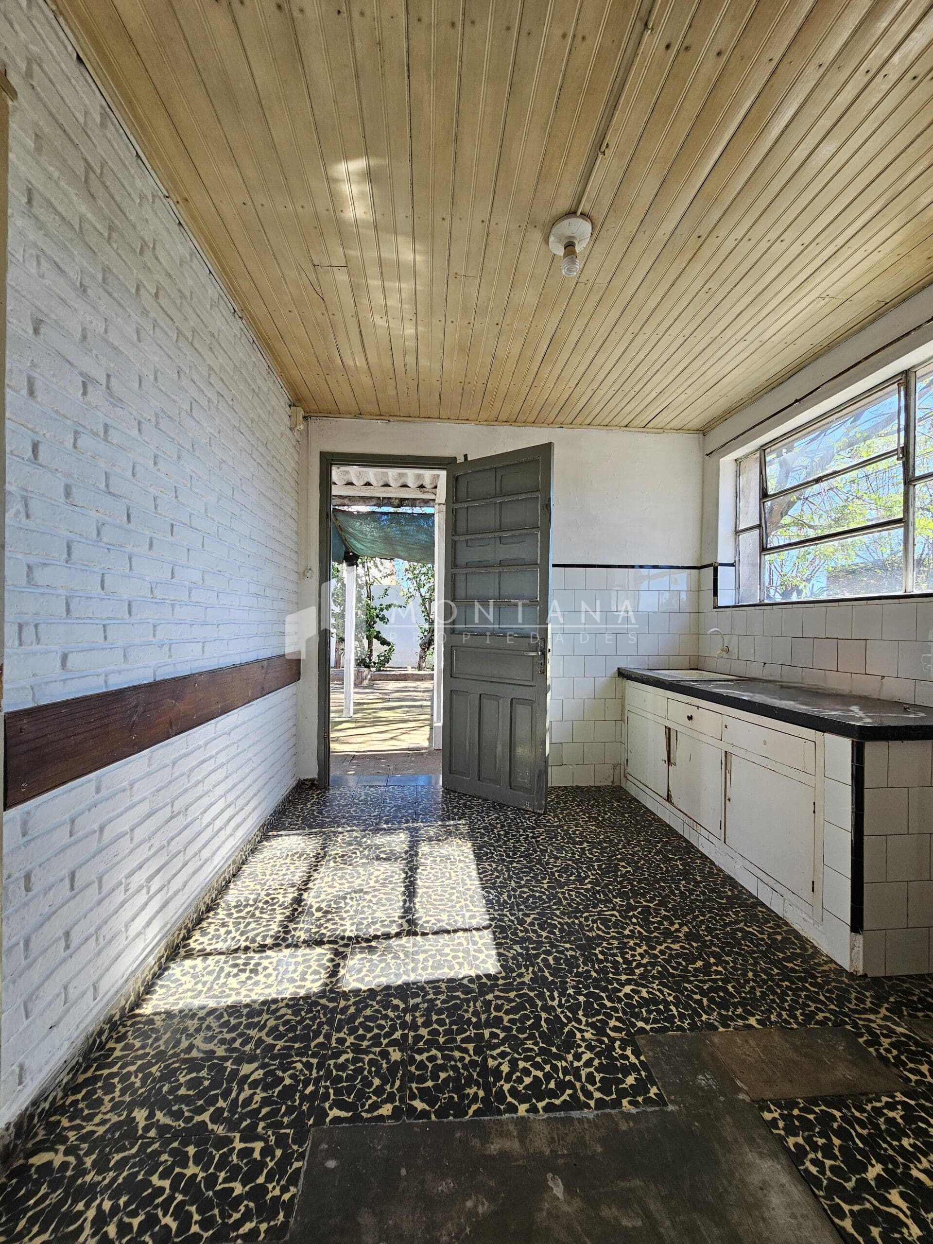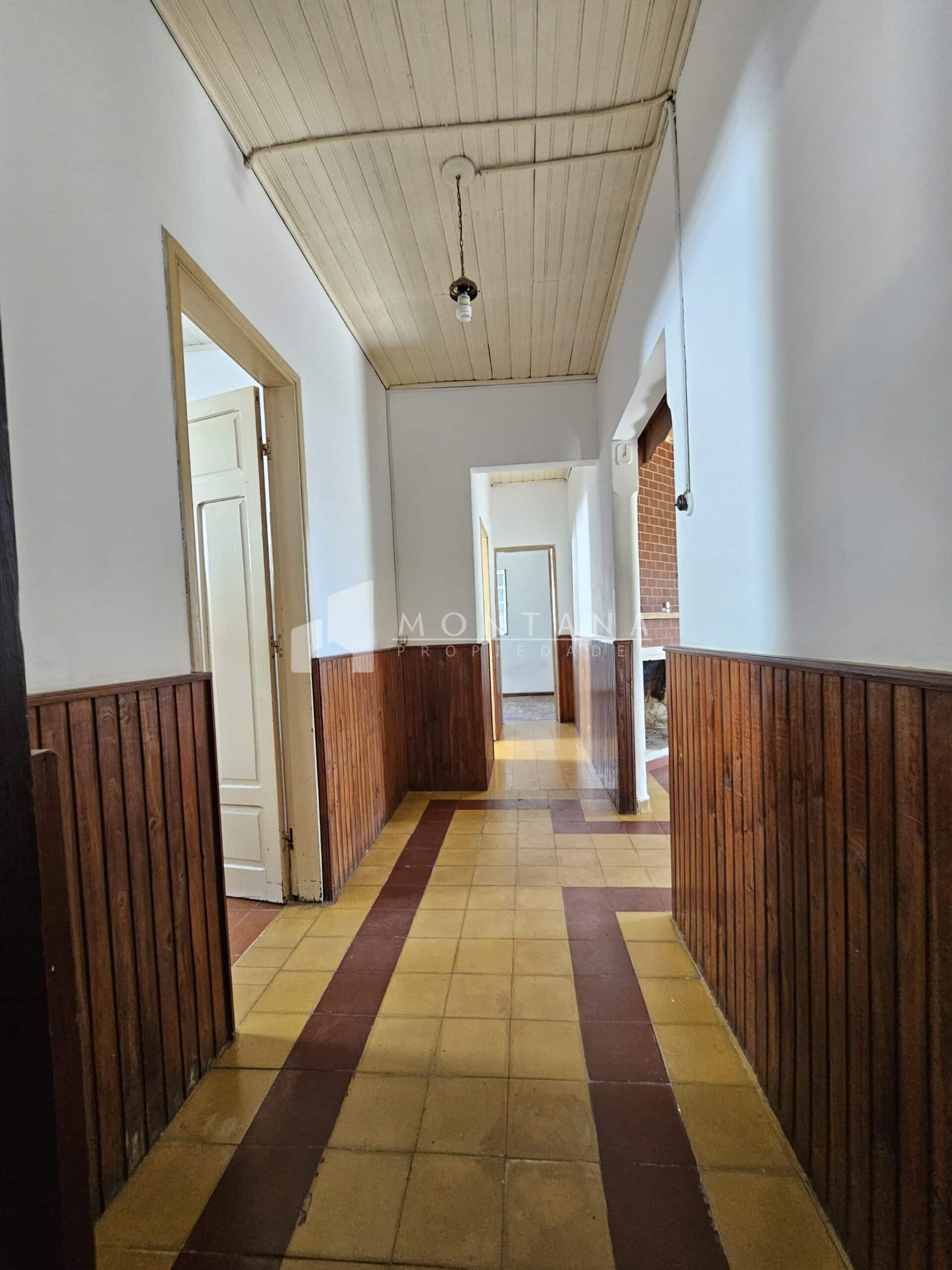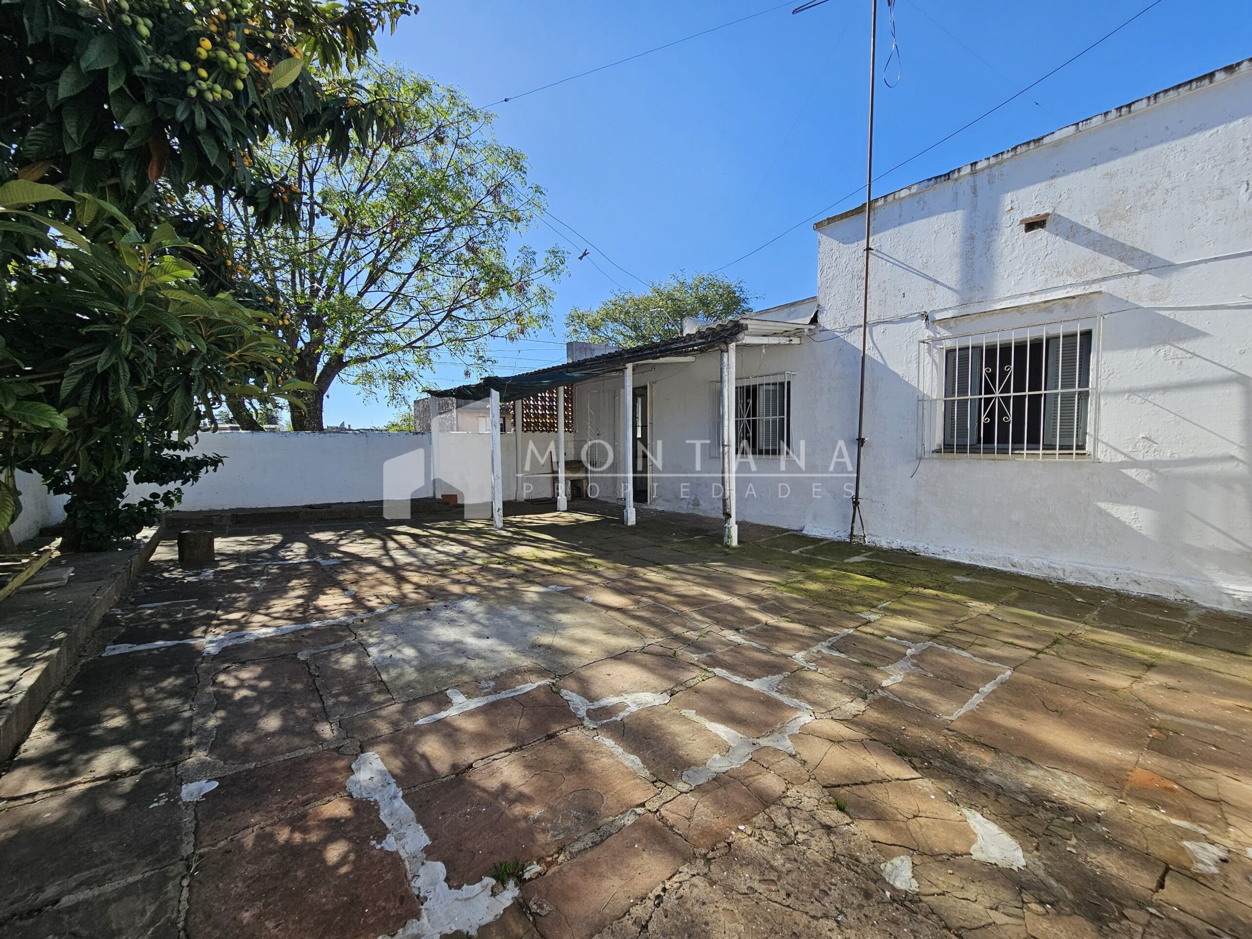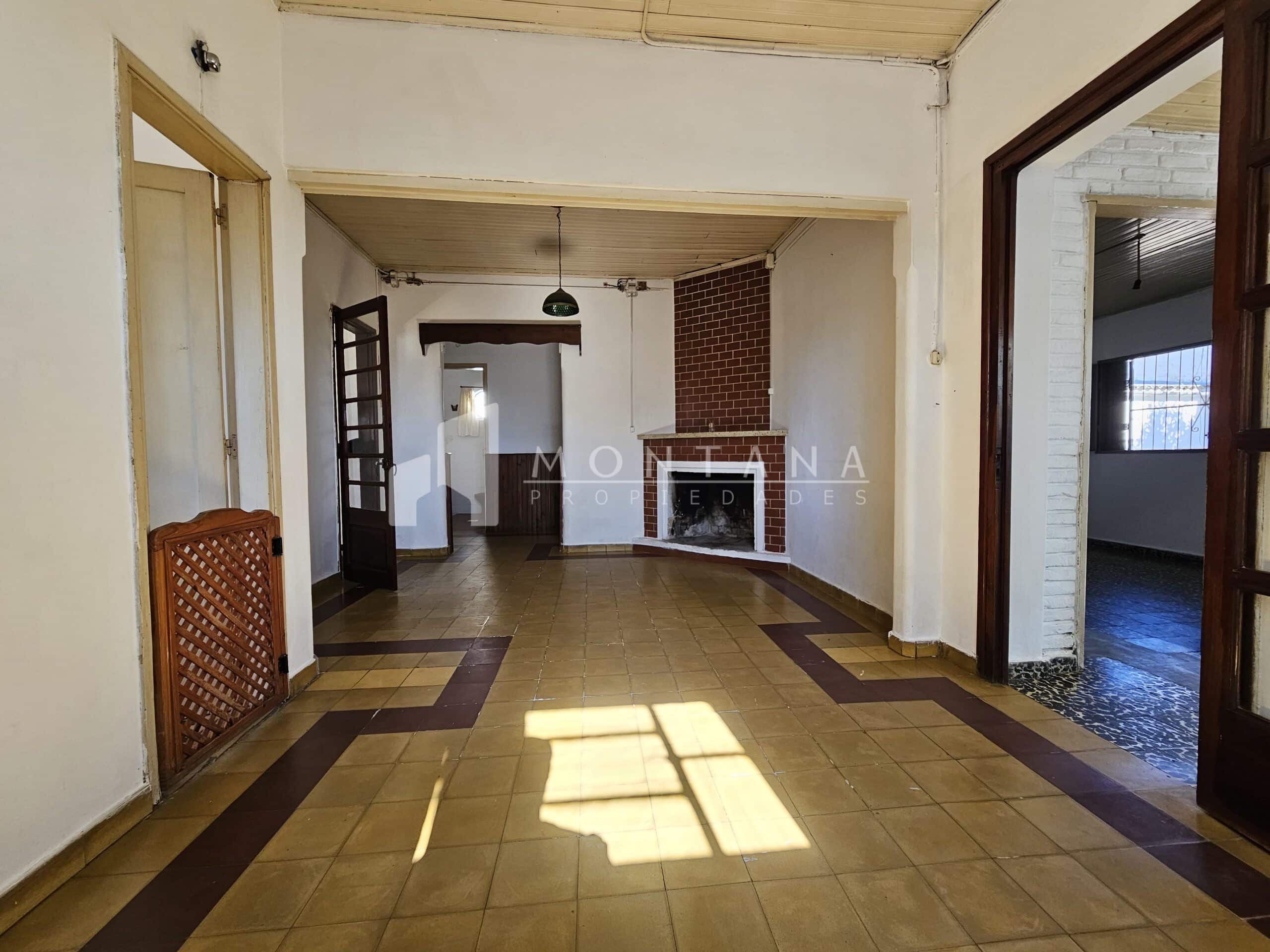 Casa amplia con 3 dormitorios (1 con placar), 2 baños, amplio living recibidor, estar comedor con estufa a leña, cocina definida con área de servicio, patio amplio con entrada para varios vehículos, garaje cerrado y frutales.