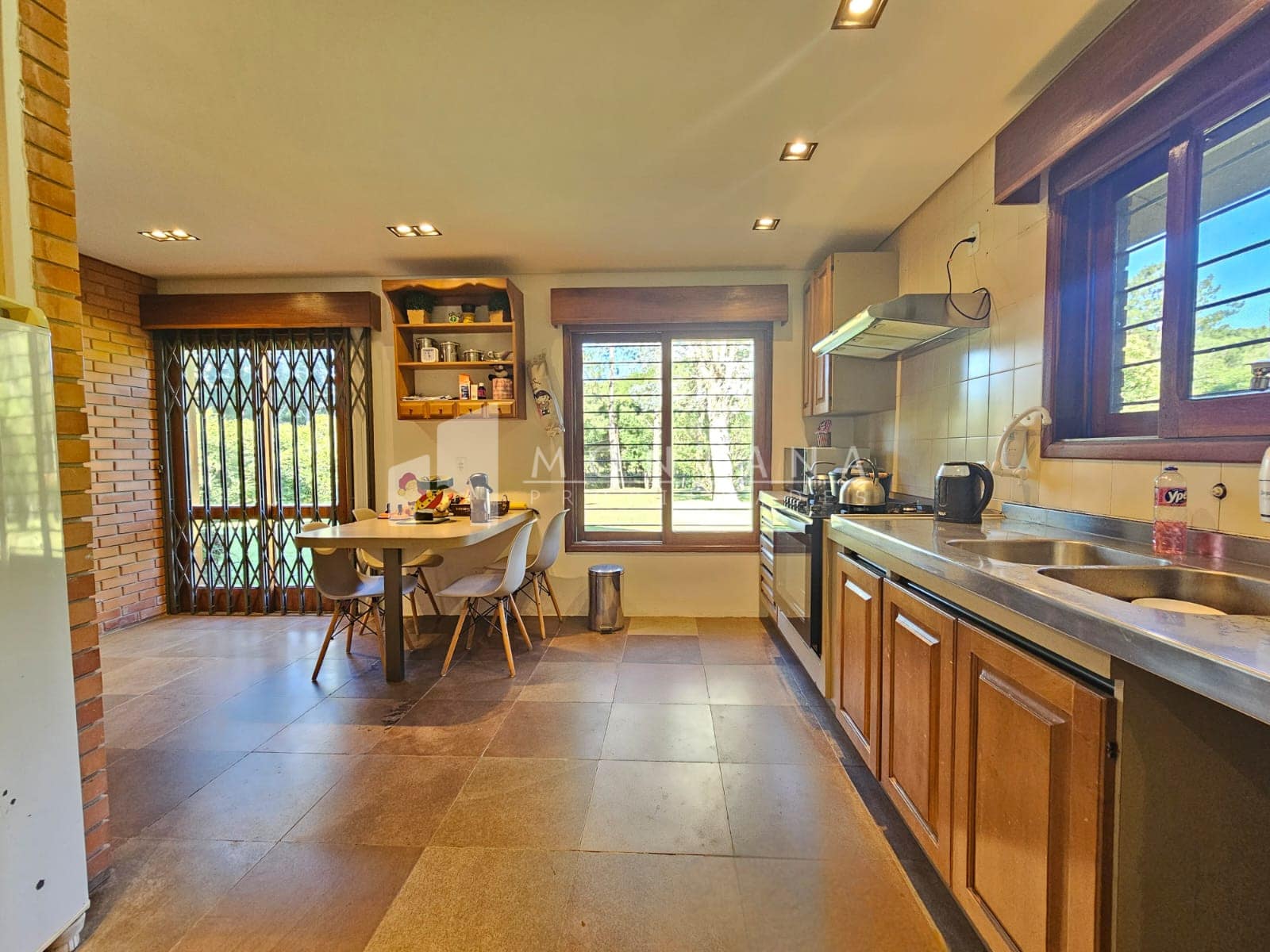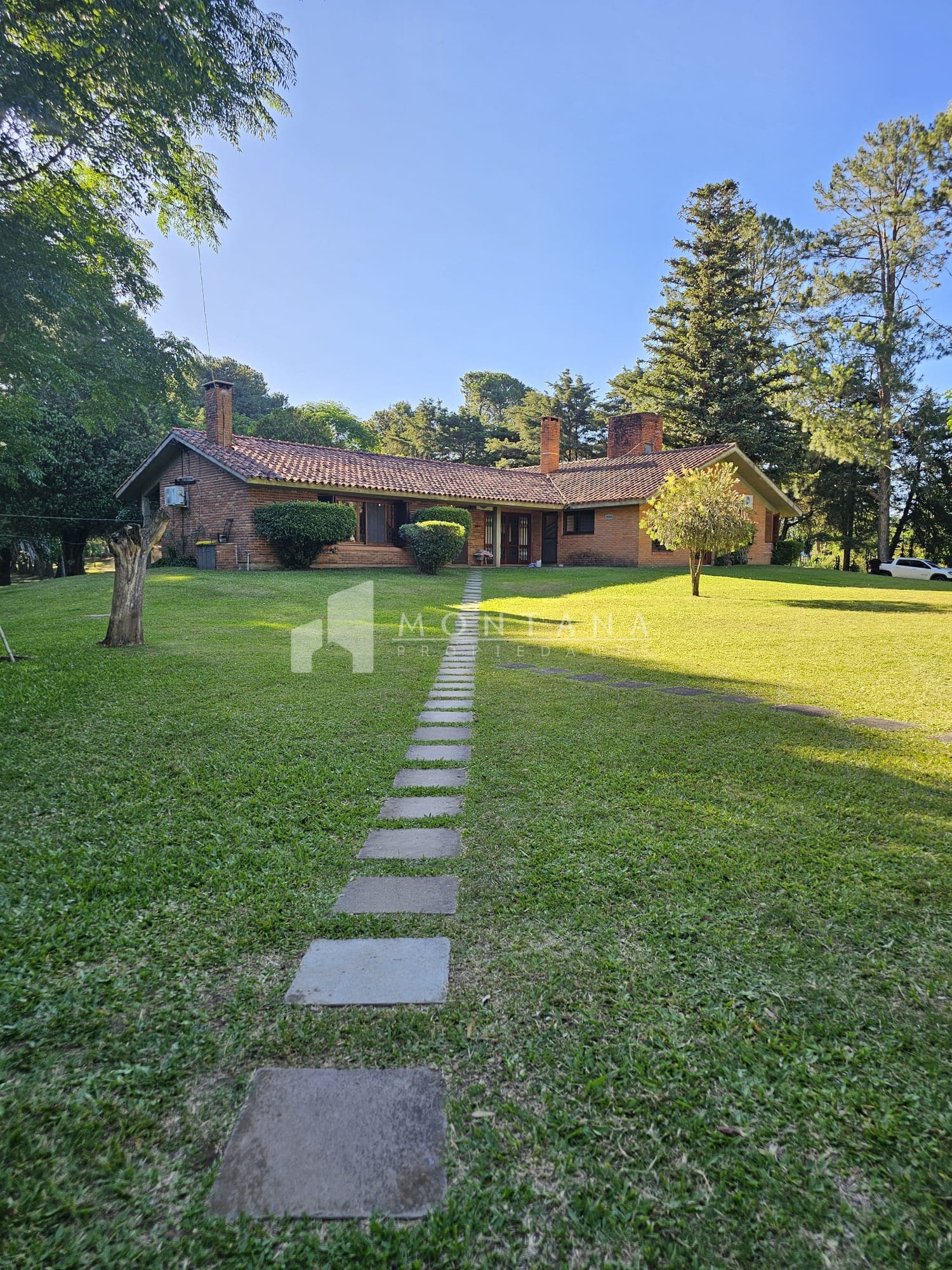 PB: Living recibidor con estufa a leña, amplio comedor, 2 dormitorios (principal en suite con vestidor), 1 baño completo, área de servicio, cocina definida con muebles a medida, segundo estar amplio con estufa a leña y salida al patio. Área de jardín con iluminación, piscina en material, cancha de futbol, barbacoa con costa al arroyo, galpón con caballerizas, caniles, casa de huésped y caja de agua con lavandería.